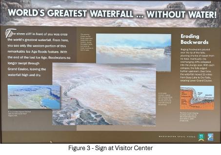 We stopped at the Grand Coulee Dam visitor center and picked up a great piece of trivia — the landscape would have allowed the dam to be built even taller, but international treaties prevented the reservoir from backing into Canada, so the dam height was set to keep the lake entirely within US territory. We also visited the Dry Falls overlook and drove the roads inside the flood basin — what an incredible visual of what a massive volume of fast-moving water can do in a very short period of time!